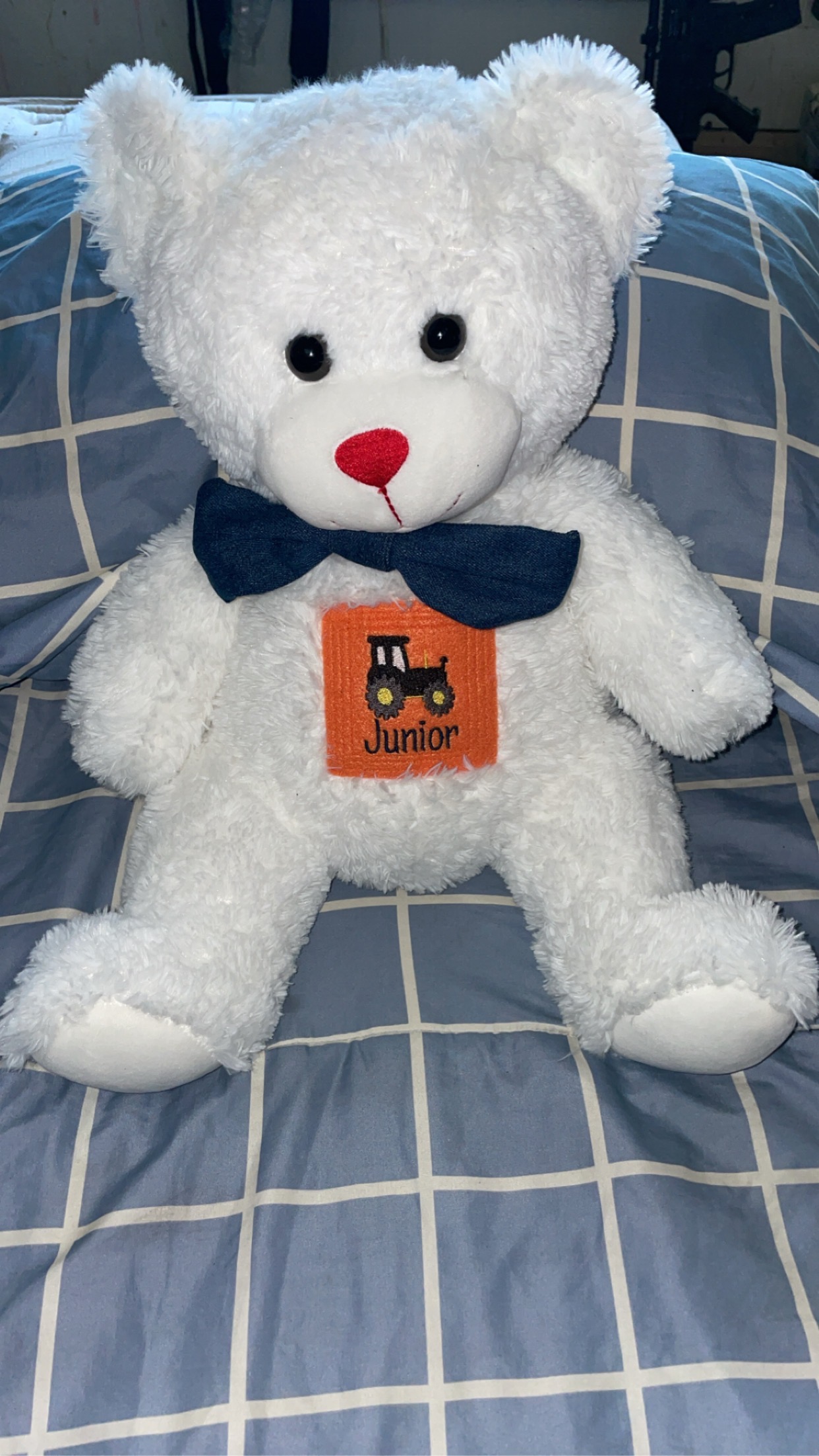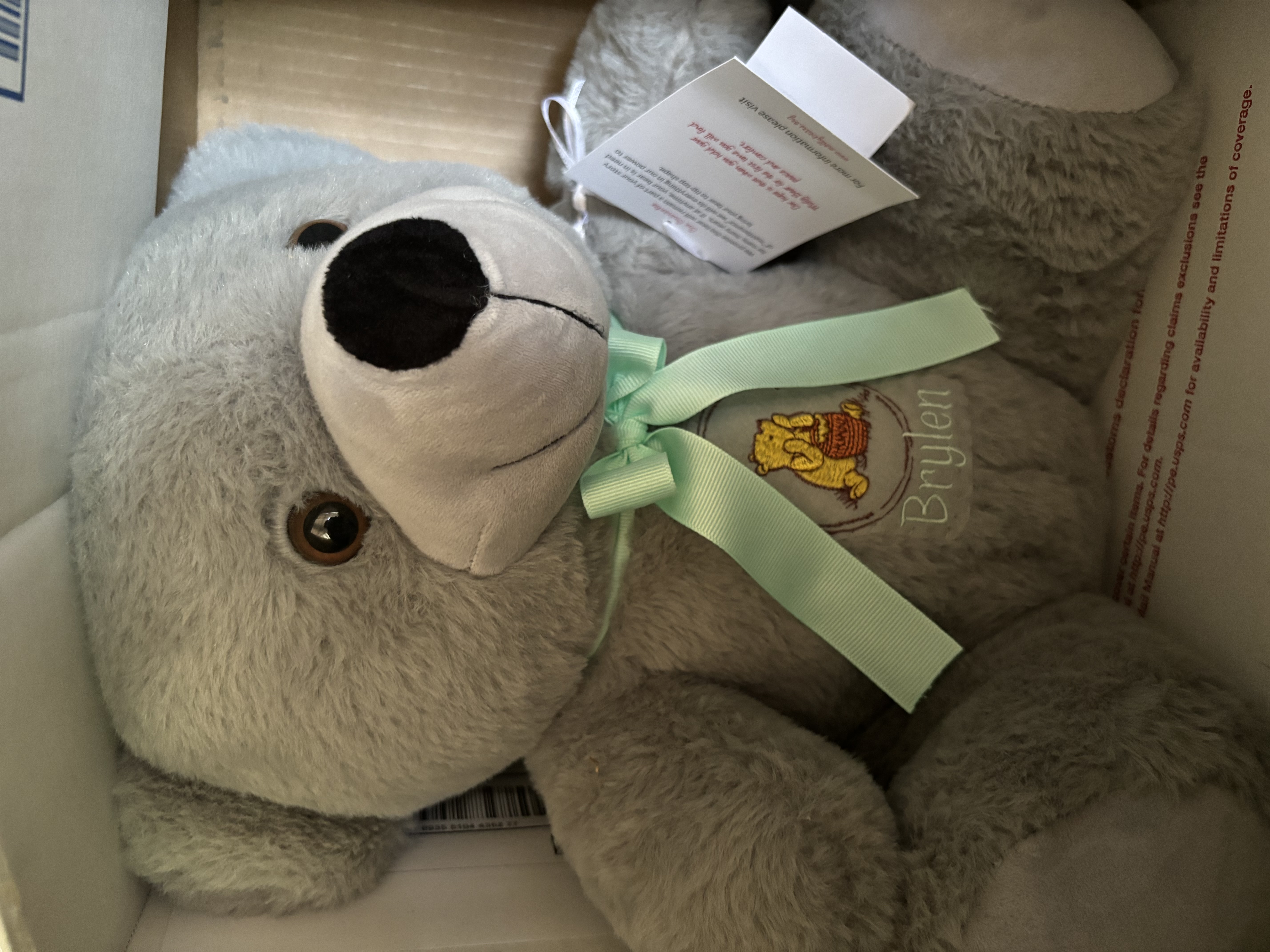 Hello my name is Skylar I’m 21, I have an almost two year old daughter Andrea. January 7, 2024 I gave birth to my angel baby whom was a jr. to his dad , my husband. So we called him Junior for short. He was 9lbs when he was born, he was a big boy. He was a surprise pregnancy, a light at the end of a very dark tunnel for us as we were going through some hard things when we found out I was pregnant. Junior was a happy baby! He hardly cried ever unless he needed something. He would just lay or be in my arms just looking around, staring at everything and content. He was a happy , curious baby. He always just wanted to see everything. I was so happy to have the perfect little family one daughter one son and their close enough in age. They were considered Irish twins! I had all these visions of what the future would look like with my children until February 11, 2024. I woke up to a nightmare, my baby boy Junior had passed away from SIDS. It’s a mother’s worst fear. I was crushed, we couldn’t even stay at our home we ended up moving. I was going through postpartum and doing research about how to handle this. I’ve never experienced anything like it before. Then I came across a mom support group for mothers who had lost baby’s just like we did. In this group someone told me about Molly bears and I wasted no time in ordering one. It finally arrived today August 31, 2024. Although it took awhile it was so worth the wait. I immediately cried when I opened the box and seen my angel bear. I picked it up and hugged it and cried. I’m so thankful a company like this exists. It’s helping me especially with closure and just contentment. I can hold my angel bear and think of all the happy times with my baby boy and it feels so real. I’m so so so grateful Molly Bears and the woman who made my bear Brandi. Took their time to make this for me and my family. It’s already helping us and we’ve only had the bear for today. And Brandi even took the time to make an extra patch for my angel baby bear and a detachable bow which I love so much. I am extremely grateful for you Brandi and Molly bears in a whole. The work you guys are doing is going to help so many grieving mothers get through it, get through the loss or even just get through the day. I know my angel baby bear definitely has already!!! Thank you guys so so much!!!!