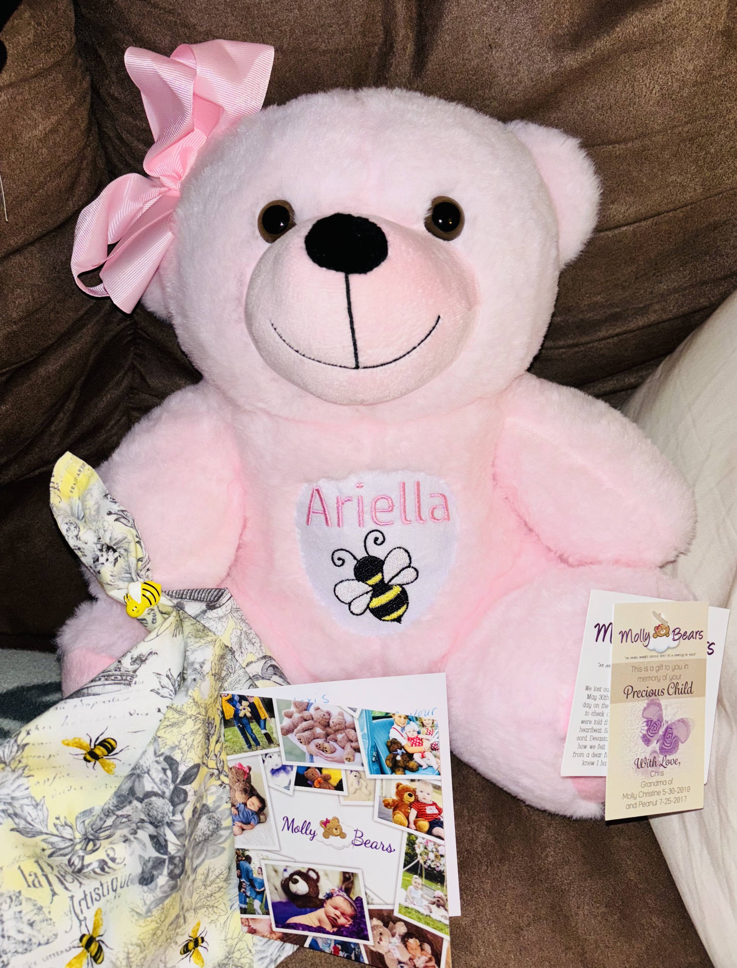 I received my Ariella Bear today. The love and equality that went into this shows and I couldn’t be more thankful and happy with it. I lost my daughter at 38 weeks in 2023. Devastated is not even the word for how I felt then and now. Thank you so so much Molly Bears for creating a bear for my Ariella in her honor! Beautifully done.