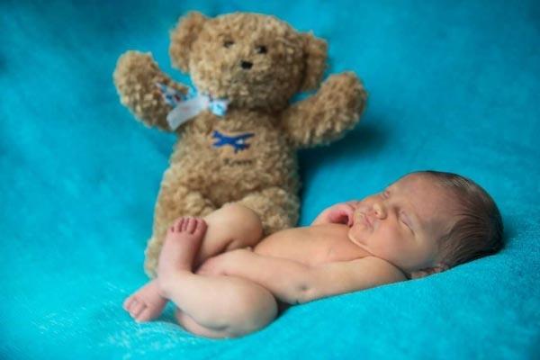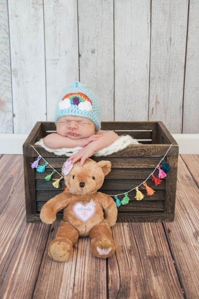 I recently gave birth to my rainbow baby, Nicholas Joseph. He is pictured here with his older sister's bear. It consoles my heart knowing Nicholas will always have a part of his sister with him through the Amelia Bear.